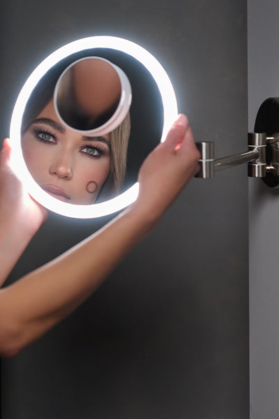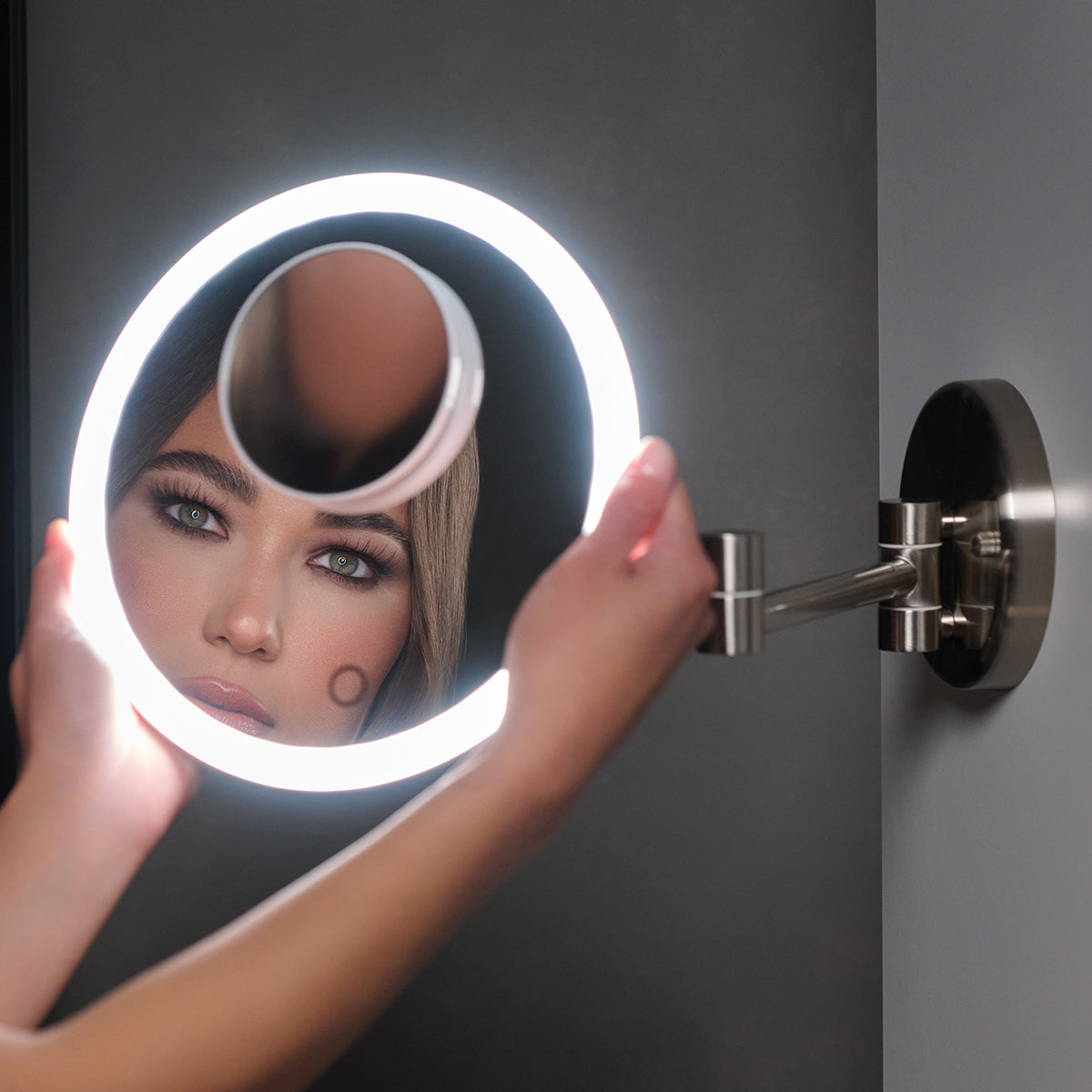 For those seeking more magnification, attach the optional magnetic 10x mirror, perfect for detail work and plucking eyebrows.